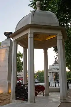 In addition, as a recipient of the Victoria Cross, his name is inscribed on memorials at Westminster Abbey and the Union Jack Club, in London, and on the "Memorial to the Chindits" on the north side of the Victoria Embankment next to the Ministry of Defence headquarters in London.