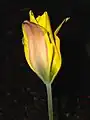 The plant blooms with a single flower. The six petals elongated or oblongate, diamond-shaped, pointed to pointed, periosteums are between 2 and 3.5 centimeters long and 0.5 to 2 centimeters wide. They are yellow and on the outside greenish-purple or pink. The six stamens are 0.4 to 0.5 times as long as the perine leaves, bald and narrowed from the ground. The pollen measures 38.4 to 40.3 x 53.7 to 67.2 microns. Three apertures (germ openings) are located on the pollen granules. The exine is 1.9 microns thick. The stylus is very short.
