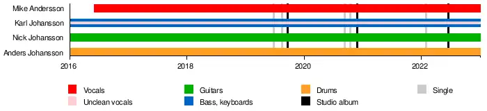Anders founded the band in 2016, together with his sons Nick and Karl Johansson.[1] The idea for creating a band together arose, after Anders listened to metal music that his sons created, which he enjoyed, eventually leading into the bands formation.[2][3] Tungsten was later joined by Swedish vocalist Mike Andersson, following which the recording of their first album started.[4]