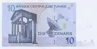 10 dinars Blue Elissa (Dido) Instituted after the United Nations IT conference in Tunis 2006. Sbeitla temple, satellite dish