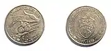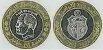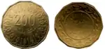 It was on 26 December 2013 that the two new tridecagonal coins were introduced, 200 millimes (copper-zinc, 29 mm diameter, 1.80 mm thickness, 9.4 gr. weight) and 2 dinar (copper-nickel, 29.4 mm diameter, 1.90 mm thickness, 11.2 gr. weight).[3]
