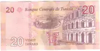 20 dinars Red, blue, and yellow Kheireddine Et-Tounsi, Ksar Ouled Soltane fortified granary in Tataouine district L’École Sadiki (Sadiki College) building in Tunis