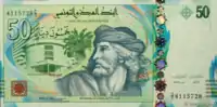 50 dinars Green, blue, and orange Ibn Rachik, Musée de la Monnaie (Currency Museum) building in Tunis Place Gouvernement la Kasbah, central square in Tunis
