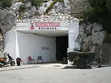 Some of the tunnels are now open to the public. The Upper Galleries, excavated during the Great Siege, are now a tourist attraction under the name of the Great Siege Tunnels. The Middle Galleries and some of the Second World War tunnels can be visited and are advertised as the World War II Tunnels.[22] The Lower Galleries are abandoned and theoretically off-limits. Most of the Second World War and post-war tunnels are closed to the public – some, notably AROW Street, have been sealed off altogether as being too dangerous to enter.[23] The Admiralty Tunnel is now a secure data storage facility.[24] Two of the post-war tunnels, Keightley Way and Dudley Ward Way, are open to civilian vehicle traffic to facilitate journeys between the west and south of Gibraltar, and along the precipitous east coast of the peninsula.