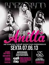 Turnê Show das Poderosas was the first concert tour of the Brazilian singer Anitta. The tour began on June 6, 2013, in Rio de Janeiro,[1] Brazil. At the premiere of the first tour was in Barra da Tijuca in Rio.[2] The tour dates happened in nightclubs and parties in Brazil.
