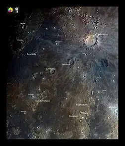 The crater(to the right) area in a Selenochromatic format Image (Si)