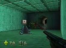 The gameplay was praised for its deep single-player missions and varied enemy types.[13][29] Game Revolution highlighted the long and complex levels, but admitted that players may "[run] around in circles for hours trying to figure out where to go next. This may be enjoyable for people who like puzzles and long gameplay, but it is aggravating for more action-oriented players".[32] N64 Magazine gave high marks to the game's level design and explained that the addition of mission objectives "gives the game more focus and betters its predecessor's pretty limited and fairly simple key-collection."[13] The artificial intelligence of enemies was considered more advanced than GoldenEye 007's, as enemies can take refuge behind objects and pop up to throw explosives towards the player.[29][36][13] GamePro also noted that they were more aggressive than Dinosaur Hunter's.[31] The game's large arsenal of weapons was also praised,[13] with GameSpot remarking that the Cerebral Bore is "possibly the grossest weapon ever conceived".[33] The multiplayer mode was praised for its use of 3D space and innovative game types.[35]