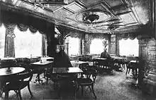 The two lower floors of the building were also altered. In October 1881, the pastry-baker and wine merchant D. B. Schucani (from Ftan in Graubünden) moved his café from the ground floor of nearby Vimmelskaftet 43 to these new mezzanine with one room with windows to Vimmelskaftet where newspapers were displayed and another with windows to Badstuestræde.[19] His countrymen and olleagues Mini and à Porta from Kongens Nytorv provided a deposit for his investment. The café was given the name Café Bernina after the Bernina Range in South-Eastern Switzerland.[13]