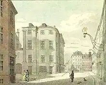 No. 157 was home to 15 residents in two households at the 1787 census. Niels Ahrensberg, a collector at Tal-Lotteriet, resided in the building with his wife Cathrine Lise Nickelman, their five children (aged two to 16), a female cook and a maid.[6] Ludevig Wittrog, a supercargo in the service of the Danish Asiatic Company, resided in the building with his wife Henriette Magdalena Rossow, their three children (aged 11 to 21) and one maid.[7] No. 156 belonged to wime merchant Jacob Drewsen at the 1787 census. He resided in the building with his wife Magdalena Friderica Zumpe, their son Martin Drewsen, the wife's sister Elisabet Margretha Zumpe, his nephew Jørgen Christopher Drewsen (assessor at the Supreme Court), an employee in his wine business, three apprentices, a coachman, a caretaker, one male servant, two maids and a female cook.[8] No. 84 belonged to fourier Johan Heinrich Cramer. He resided in the building with his wife Margrete Catrine Lars Datter.[9]