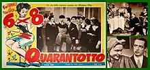 The film's title was changed to Tutta la città canta, a title that echos the film The Whole Town's Talking.[5] It was distributed in Italy by Effebi and was released on 15 August 1945.[1] The film had little success in Italy as jazz music was no longer a hot topic as it had become legal once again.[5] Freda spoke negatively about the film, stating that it was "a terrible turnip of a film" and that "the attempt at jazz was amusing. It was a 'spaghetti musical"[6]