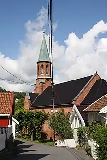 Tvedestrand Church (Norwegian: Tvedestrand kirke) is a parish church of the Church of Norway in Tvedestrand Municipality in Agder county, Norway. It is located in the town of Tvedestrand. It is the church for the Tvedestrand parish which is part of the Aust-Nedenes prosti (deanery) in the Diocese of Agder og Telemark. The red, brick church was built in a long church design in 1860 using plans drawn up by the architect Georg Andreas Bull. The church seats about 300 people.[1][2]
