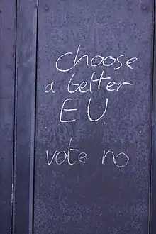 Declan Ganley, Libertas leader, said the unexpectedly high Yes vote demonstrated "how scared people are" of the state of the economy.[31] This feeling was echoed by a certain proportion of voters, one of whose attitude was "I'm here because I have a vote and, basically, I've been told what to do with it".[32] The Socialist Party's MEP Joe Higgins praised the performance of the No campaign.[29] Sinn Féin's President Gerry Adams asked why the first referendum had been ignored.[29] Sinn Féin Vice-president Mary Lou McDonald criticised the "dishonourable and depressing" Yes campaign.[29] Richard Greene of Cóir promised the war against the Treaty would continue despite the second result,[29] saying Cóir was "extremely disappointed that the voice of the people was not heard the first time around".[33] Václav Klaus, President of the Czech Republic, described the vote as "tarnished since this is a repeated referendum".[30] Nigel Farage, leader of the United Kingdom Independence Party, said the process had been no different from "a corrupt election in Zimbabwe or Afghanistan".[30][34] Bruce Arnold, a columnist with the Irish Independent, said the damage done to the disenfranchised by the "tainted outcome" of the referendums would "not be easily fixed".[35]