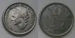 | Wilhelmina | Utrecht and Philadelphia | Silver | Queens head to the left | Value and mint year between two bonded oak branches | Reeded with no edge lettering | 1926(U), 1928(U), 1939(U), 1940(U), 1941(U and P), 1943-1945(P) |