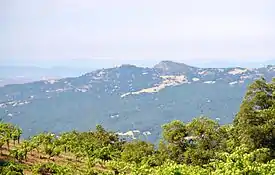 The peak straddles a ridge separating the Suisun Valley wine region in Solano County on the east side from the Napa Valley wine region on the west side, and is a prominent landmark visible from most points in Suisun Valley. The north summit at an elevation of 2,259 feet (689 m) is the tallest of the two, and the lower south summit rises to an elevation of 2,177 feet (664 m). It is the second highest peak in Solano County, Mount Vaca being the highest.