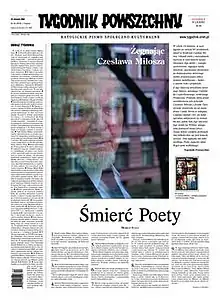 Tygodnik Powszechny (Polish pronunciation: [tɨˈɡɔdɲik pɔˈfʂɛxnɨ], The Common Weekly) is a Polish Roman Catholic weekly magazine, published in Kraków, which focuses on social, cultural and political issues.[1] It was established in 1945 under the auspices of Cardinal Adam Stefan Sapieha. Jerzy Turowicz was its editor-in-chief until his death in 1999. He was succeeded by Adam Boniecki, a priest.