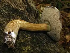 - ↑ Smith AH, Thiers HD. (1968). "Notes on Boletes: 1. The generic position of Boletus subglabripes and Boletus chromapes. 2. A comparison of four species of Tylopilus". Mycologia. 60 (4): 943–54. doi:10.2307/3757396. JSTOR 3757396.