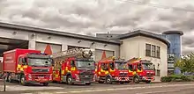 TWFRS Volvo appliances outside Gateshead fire station in 2018