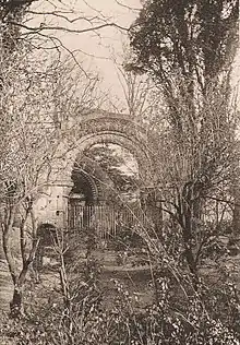 Tyninghame House, a category A-listed building, is located to the east of the village by the estuary of the River Tyne. It lies adjacent to the site of the original village, and within the gardens can be seen the remains of St. Baldred's church. There was a manor at Tyninghame in 1094, and even then it was held by the Lauder of The Bass family. In 1617 Isabella Hepburn, Lady Bass, (widow of Sir George Lauder of the Bass), made additions to it.[6] In the 17th century it was sold to the Earl of Haddington. The present building dates from 1829 when the 9th Earl of Haddington employed William Burn to greatly enlarge the house in the Baronial style. In 1987 the contents of the house were sold, and the house was divided into flats.