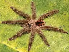 2. 1 2 3 Bertani, R. (2012), "Revision, cladistic analysis and biogeography of Typhochlaena C. L. Koch, 1850, Pachistopelma Pocock, 1901 and Iridopelma Pocock, 1901 (Araneae, Theraphosidae, Aviculariinae)", ZooKeys (230): 1–94, doi:10.3897/zookeys.230.3500, PMC 3494022, PMID 23166476