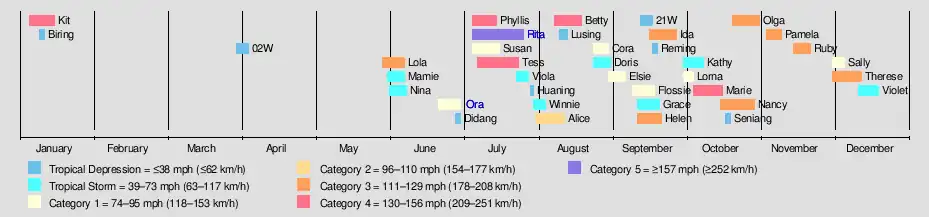 NancyOctober 16–26Typhoon195 km/h (120 mph)945 hPa (27.91 inHg)NoneNoneNone