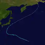 The northern hemisphere part of a "cyclone twin" developed into a tropical depression west of Kwajalein on May 29. It headed west and slowly strengthened. As it turned to the northwest and then the north northeast, it reached its maximum intensity on June 5. It continued heading north northeast, steadily weakened, and went extratropical on June 7.[3]