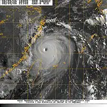 ![]() Typhoon Saomai near peak intensity on August 9 | |