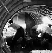 ![]() Certain air force personnel carry relief supplies onto a plane after the typhoon |