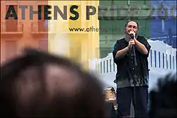 Tzimis Panousis (Greek: Δημήτρης "Τζίμης" Πανούσης; 12 February 1954 – 13 January 2018) was a Greek musician, stand-up comedian and occasional film and theater actor born in Athens, where he spent most of his life. He is often seen as the modern-day Aristophanes.[1] His fans usually refer to him as “Tzimakos” (little Jim). His first wife was Lili Achladioti with whom he had a son, Aris. He later married Athina Aidini and they had a daughter, Fotini.