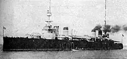 By late December 1914, all three of the U-5-class boats were based at the naval base at Cattaro and all took part in combat patrols.[1] Between the three boats, they sank five ships with a combined tonnage of 22,391,[Note 2] captured seven ships, and damaged one dreadnought.[12][13][14] U-6 was the least successful, sinking a single ship of 756 tons;[13] U-5 was the most successful, sinking three ships with of a combined tonnage of 20,570,[12] including the French armoured cruiser Léon Gambetta.[3] U-12 damaged, but did not sink, the largest ship torpedoed by any of the U-5 class when she hit the French battleship Jean Bart on 21 December 1914.[3]