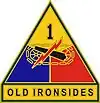 The division was nicknamed "Old Ironsides" by its first commander, Major General Bruce Magruder, after he saw a picture of the frigate USS Constitution, also nicknamed "Old Ironsides". The large "1" at the top represents the numerical designation of the division and the insignia is used as a basis for most of the other sub-unit insignias.