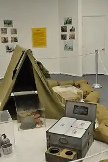 Exhibit at the 1st Armored Division and Fort Bliss museum depicts the type of bivouac site used in North Africa in WWII. Soldiers slept in cloth tents and carried chests of equipment and stoves.
