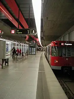 The U2 is an underground line in Nuremberg, opened on 28 January 1984 and the last station along the line to open was Flughafen (Airport) in 1999. The line is about 13.1 kilometres (8.1 mi) long and has 16 stations; the termini are Röthenbach and Flughafen. Since 2010 all trains in regular operations are run driverless. At 2,388 metres (7,835 ft) the stretch between Ziegelstein station and Flughafen station is the longest interval between two stations in the network and the only single track section on any subway line in Germany (both stations have two platform tracks, but the track between the two is single track without passing loops).