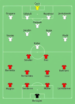 4. 1 2 "Full-time report Switzerland-Czech Republic" (PDF). Union of Football European Associations. 7 June 2008. Retrieved 9 June 2012.