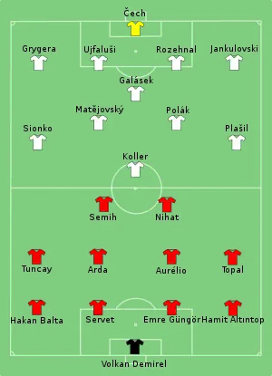 16. 1 2 3 "Team Line-ups – Group A – Turkey-Czech Republic" (PDF). Union of European Football Associations. 15 June 2008. Retrieved 11 June 2012.