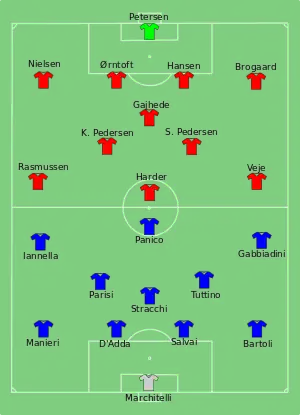 6. 1 2 "Tactical Line-up – Italy-Denmark" (PDF). UEFA.com. Union of European Football Associations. 13 July 2013. Retrieved 13 July 2013.