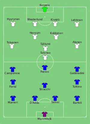 2. 1 2 "Tactical Line-up – Italy-Finland" (PDF). UEFA.com. Union of European Football Associations. 10 July 2013. Retrieved 10 July 2013.