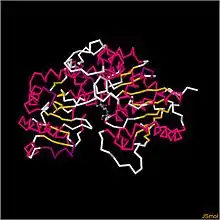 Some of the inhibitors of this enzyme include CaCl2, CoCl2, Cu+2, CuCl2, KCl, Mg+2, and Mn+2.[8] The primary active site residue of this enzyme is Asp181, as determined by studies of how mutations affect enzyme capacity.[9] There are several documentations of the crystalline structure of flavonol 3-O-glucosyltransferase (2C1X, 2C1Z, and 2C9Z),[10] and, based on these renderings of the enzyme, there is only one subunit in the quaternary structure of the molecule.