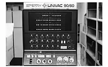 The Univac Series 90 is an obsolete family of mainframe class computer systems from UNIVAC first introduced in 1973.[1] The low end family members included the 90/25, 90/30 and 90/40 that ran the OS/3 operating system. The intermediate members of the family were the 90/60 and 90/70, while the 90/80, announced in 1976, was the high end system.[2] The 90/60 through 90/80 systems all ran the Univac’s virtual memory operating system, VS/9.