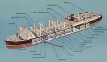 Essaysons was propelled by two four-bladed propellers which were 16 feet (4.9 m) in diameter.[7] These were driven by two turbo-electric engines which developed 4,000 horsepower each. She was capable of speeds up to 17.3 knots (19.9 mph) when lightly loaded, and 16.55 knots (19.05 mph) with her hoppers full. The ship's two oil-fired boilers developed high-pressure steam (575 psig) for propulsion and electrical generation.[6] Her tanks held 7,000 barrels of bunker C fuel, giving her an unrefueled cruising range of approximately 7,700 statute miles.[7] She was crewed by 18 officers and 101 men. Dredging continued around the clock, so the crew worked in shifts.[3] Men worked 10 days and then got four days off. The ship had a machine shop, store, a crew lounge with a ping-pong table, a six-bed medical dispensary, laundry facilities, a cook staff and full galley for meal service, and separate dining rooms for officers and men.[6][7][8]