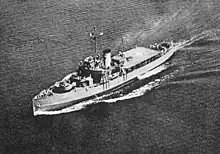 Propulsion3 × Parsons LP impulse turbine, center turbine high pressure, outboard turbines, low pressure; 6 × Scotch boilers, 5,000 shp (3,700 kW); triple screws