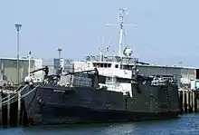 In the early 1980s, Woodbine was modified and used as a mobile fish processing ship in Alaska for the Woodbine Alaska Fishing Company (WAFCO), where she was working around 2007.[3] The buoy deck was enclosed and used as a processing floor with 4 large freezers. On the stern a galley was built and the whole deck aft of the wheelhouse was enclosed to shelter the cardboard used to pack frozen fish in. The forward deck was outfitted with multiple holding tanks for fish waiting to be processed. In the spring of 1984 she suffered an engine room fire when an oiler left a container of solvent open on the grid deck above the main propulsion panel in the image. The fire was limited to about 1/3 of the panel. She was dead in the water off Eureka California for several days while coastguard stood by, and we made repairs. The fire caused overheating in the propulsion generators and a couple hundred pounds of solder had to be melted back into the armatures. Also, a couple miles of wire needed to be redone in the panel.