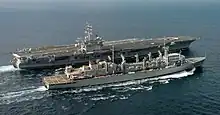 USNS Bridge replenishing USS Nimitz at sea in February 2006