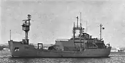 The Naval Research Laboratory was forced by increasing ship costs to choose between Mizar and the newer Hayes and chose to retain Hayes.[note 4] In 1975 Mizar came under the technical control of the Naval Electronic Systems Command (NAVELEX) to become part of the "Caesar fleet" supporting the Sound Surveillance System (SOSUS) installation under the unclassified name Project Caesar.[23][24] A footnote to a table of ships in The Federal Ocean Program dated April 1974 noted that Mizar was funded and operated by NAVELEX and no longer was funded as an oceanographic ship.[25]