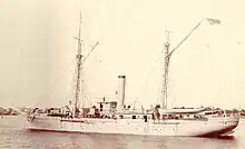 By 1913, Woodbury was not only the Coast Guard's oldest cutter, she was the oldest active-duty vessel in U.S. government service, as well as being the only ship to have seen active service in both the American Civil War and the Spanish–American War.[25] Despite her age, she was still able to perform useful service. On 10 January 1913, for example, the crew of Woodbury were able to effect temporary repairs to their ship's broken rudder to go to the aid of the steamer Monhegan, which, after breaking down on the Maine coast, was being driven to destruction by a gale. Woodbury was able to get a line to the stricken vessel and tow it to safety, albeit at the stately pace of 3 knots.[26]