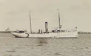 She was launched on 24 October 1908 by New York Shipbuilding at Camden, New Jersey.[1] Her homeport was Savannah, Georgia where she enforced customs laws, conducted search and rescue operations and destroyed derelict vessels. After the start of World War I she also enforced neutrality laws along the eastern seaboard.[2] During a search and rescue attempt on 4 March 1917 assisting the steamer Louisiana run aground near Ocean City, Maryland, the Yamacraw lost 10 of her crew. Several citations for heroism were awarded posthumously.[2] After the United States declared war on Germany on 6 April 1917, Yamacraw was assigned to the U.S. Navy but retained her Coast Guard crew. She served as a patrol vessel in the Chesapeake Bay to Nantucket Shoals area until called for convoy duty to Europe. During convoy missions escorting merchant vessels she performed a rescue, saving four survivors of a torpedo attack.[3] On escort duty Yamacraw cruised over 36,000 miles.[2] Upon return to Coast Guard control after the war, she returned to routine patrol work at Savannah. In the spring of 1921 she served as part of the International Ice Patrol, returning to Savannah after July.[2] After the passage of Prohibition, she took an active role in law enforcement along the southeastern coast. Yamacraw was decommissioned at Curtis Bay, Maryland on 11 December 1937 and sold for $10,300 on 13 April 1938 to Merritt-Chapman-Scott Corporation.[1]