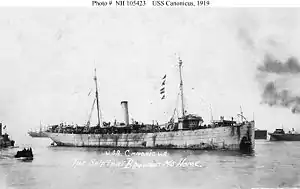 ![]() USS Canonicus (ID-1696) in British waters in 1918. | |
