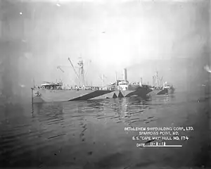 ![]() USS Cape May off the Bethlehem Shipbuilding Company shipyard at Sparrows Point, Maryland, on 8 November 1918. | |