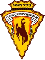 USS Cheyenne (SSN-773), the final Los Angeles-class submarine, is the third ship of the United States Navy to be named for Cheyenne, Wyoming. The contract to build her was awarded to Newport News Shipbuilding and Dry Dock Company in Newport News, Virginia on 28 November 1989 and her keel was laid down on 6 July 1992. She was launched on 16 April 1995 sponsored by Mrs. Ann Simpson, wife of Wyoming Senator Alan K. Simpson, and commissioned on 13 September 1996, with Commander Peter H. Ozimik in command. Cheyenne transferred to her homeport of Pearl Harbor, Hawaii, in 1998.