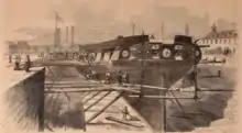 Starting shortly after World War II, a controversy arose over whether the 1854 sloop was a new ship or a rebuilt version of the 1797 frigate. Naval architect Howard I. Chapelle was one of the first people to raise the issue. In his book The History of the American Sailing Navy, published in 1949, he pointed out the differences in the hull dimensions of the 1797 Constellation and the 1854 Constellation as evidence that they were two different ships. He also stated that, "Unfortunately, some of the semi-official lists of American naval ships have listed [the original Constellation] as though she had, in fact, been preserved and altered. This has led to many believing the sloop-of-war, which is still in existence, to be the oldest ship in the Navy and to have had a continuous identity since 1797...the only reason her register was maintained, by means of an administrative fiction, was to enable the work to be done without the need of applying to Congress for authority and funds to build an entirely new ship."[17] Stephen Bockmiller and Lawrence Bopp agree with Chapelle, writing in USS Constellation: An Illustrated History, that "working under the subterfuge of 'repairs,' the Navy actually began building a new ship about 900 yards from where the original Constellation was being dismantled. Thus, unwittingly, the Navy itself would originate the arguments about the authenticity of the Constellation. To further compound the argument, some salvageable timbers from the original ship, particularly the ship’s knees, were used in constructing the new vessel."[18]