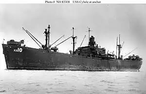 ![]() USS Cybele (AKS-10) at anchor, c. 1945–1946 | |